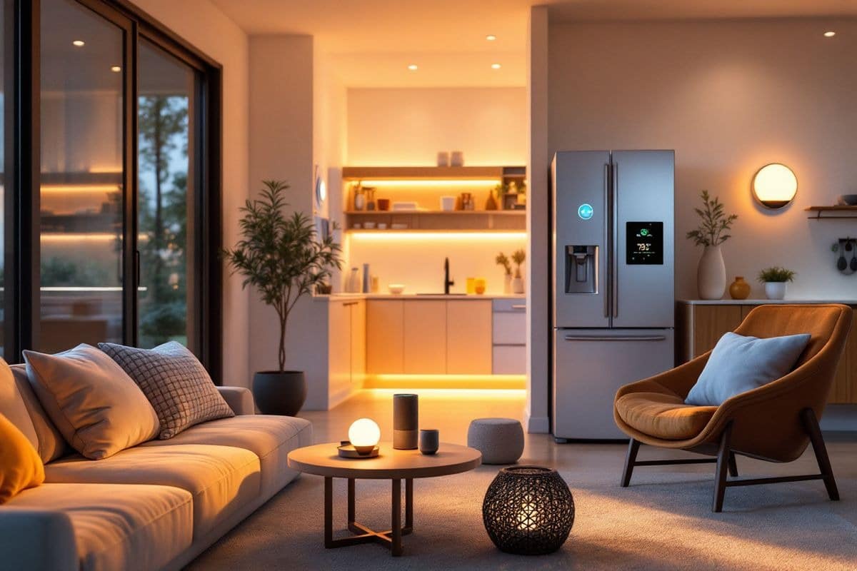 Les systèmes d’éclairage adaptatifs ajustent automatiquement la lumière selon les moments de la journée ou l’ambiance souhaitée. La domotique se fond dans le décor : capteurs de lumière, stores automatiques, purificateurs d’air dissimulés dans le mobilier.